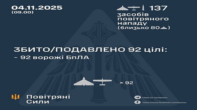 Збито та подавлено 92 цілі противника04.11.2025 09:31